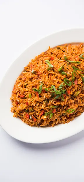 Jollof Rice, Fried Rice, Plain Rice, and White Rice & Stew offer flexible options. Tomato Stew pairs well with Fried Chicken, Fried Turkey, or Fried Hake Fish.